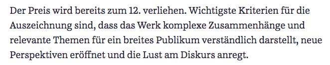 Der Sachbuchpreis des NDRwurde unter 3 Titel ausgewählt. Und als sie zwei davon mit einem Preis versahen, blieb der 3. draussen und unerwähnt warum, neben Frauen -Statistiken/aus dem Comuter- und Fluchten -?- , wenn sein Titel vom Ende der Welt spricht. Apokalyptischer Zeit. Wo nichts mehr sein wird nach uns. Gelogen. schlecht geschrieben. Warum sagt das dann keiner. Keine, dass wir gewarnt werden. Der Buchladen kann es nicht liefern, ausverkauft, vergriffen, warten, weil so viel bestellt?