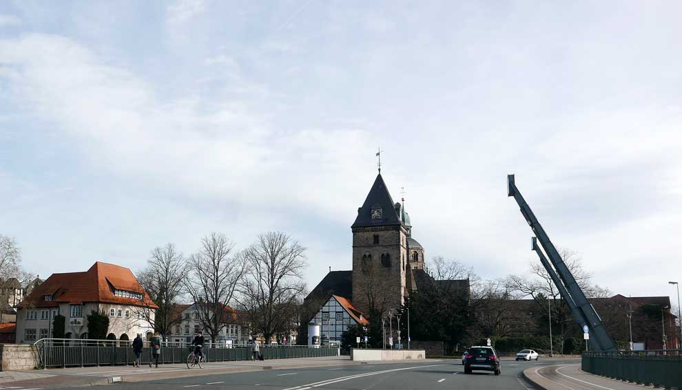 Hameln an der Weser 10 Kilometer bei Schloss Schwöbber. Das Münster als Gründung aus karolingischerer Zeit.
