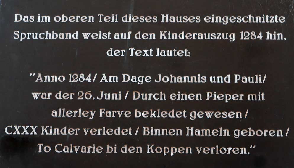 Als sie nicht zahlen wollten nachdem man sie von den Ratten befreite und so die Kinder verloren alle, auf nimmer wiederehen, wenn nicht ein Blindes und ein Stummes ohne die Flöte zu hören und ohne reden zu können übrig geblieben erzählen konnten, was geschieht in solchen Fällen.