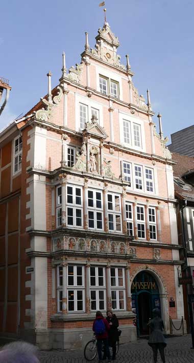 oben an den Giebeln die Neidköpfe sollten abwehren, wer Übles im Sinn hatte.