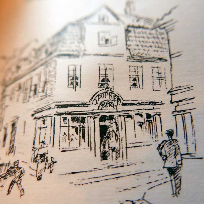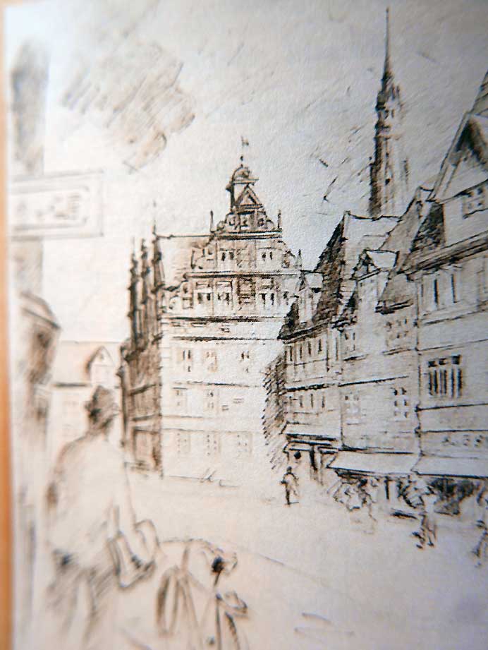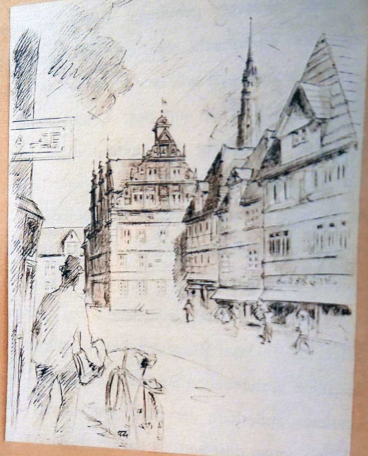 da oben sass der Vater und zeichnete auf den Marktplatz das Rathaus vor und nach 1945