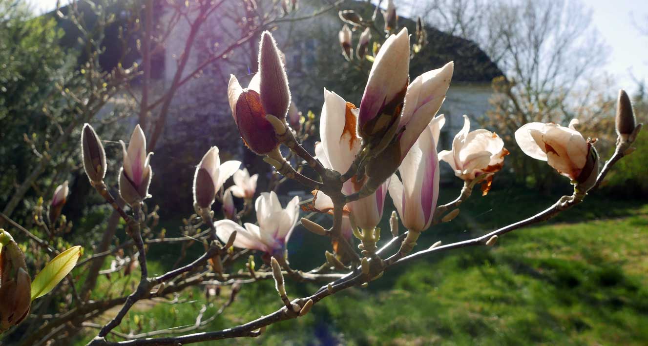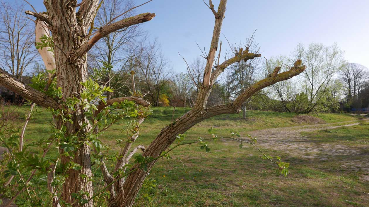 Noch ohne Blätter die beiden Linden nahe der Kirche, wie verschieden das Geäst. Solange man es lässt.