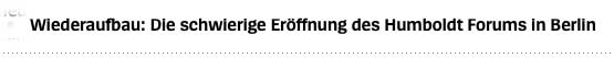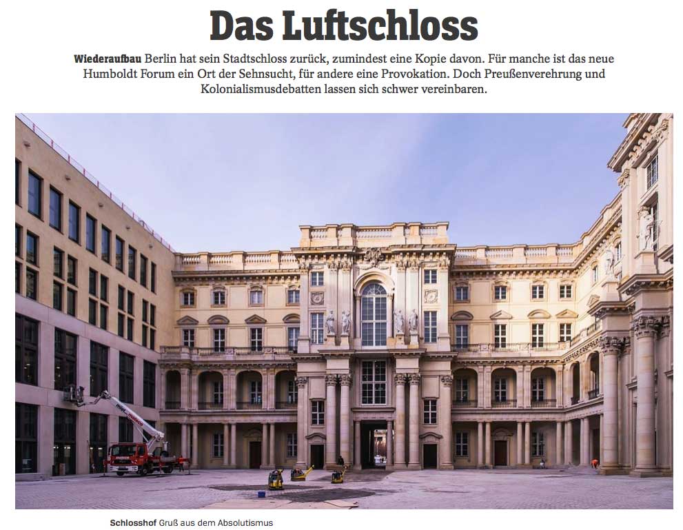 Während in den USA die koloniale Geschichte nun angenommen wird, denn das ganze Amerika heute ist eine Kolonie Europas, bauen sie in der Mitte Europas an einer Trophäengeschichte mit Haus dieser Eroberungen in der Ferne. Um sich selbst zu entkommen. Mit Hilfe aus London(McGregor), Paris(Savoir), Israeals(Appelbaum), alle weggelaufen, und haben nun den Dreck am Stecken. Nennen es Humboldt Forum, perfiderweise ohne ihn von Anfang an. Wann ist Israels Kolonialgeschichte dran.