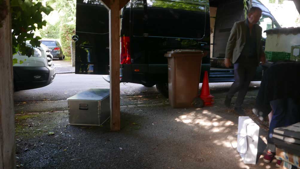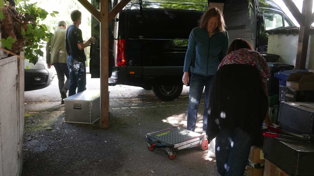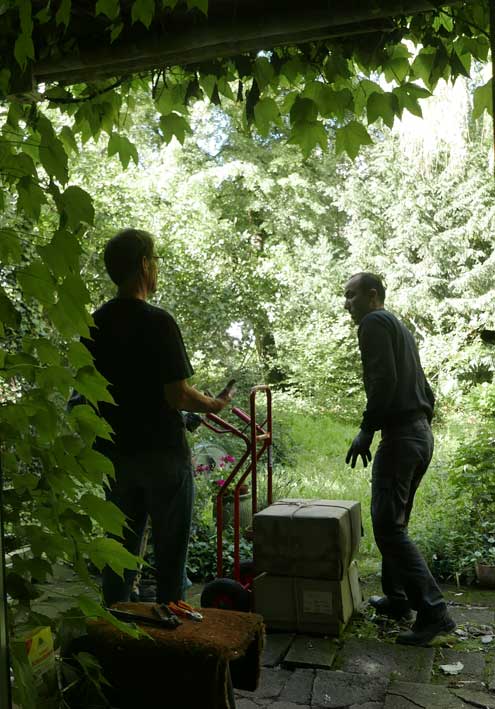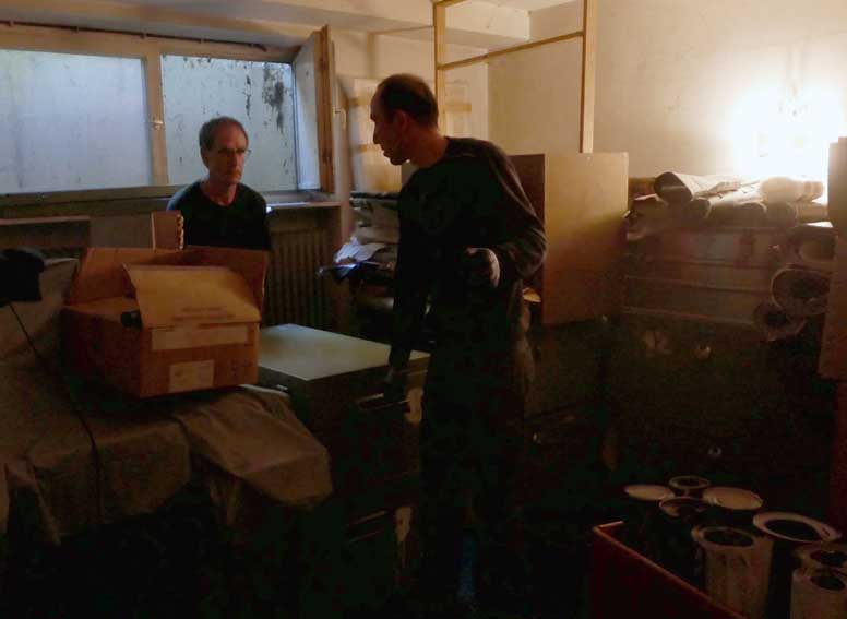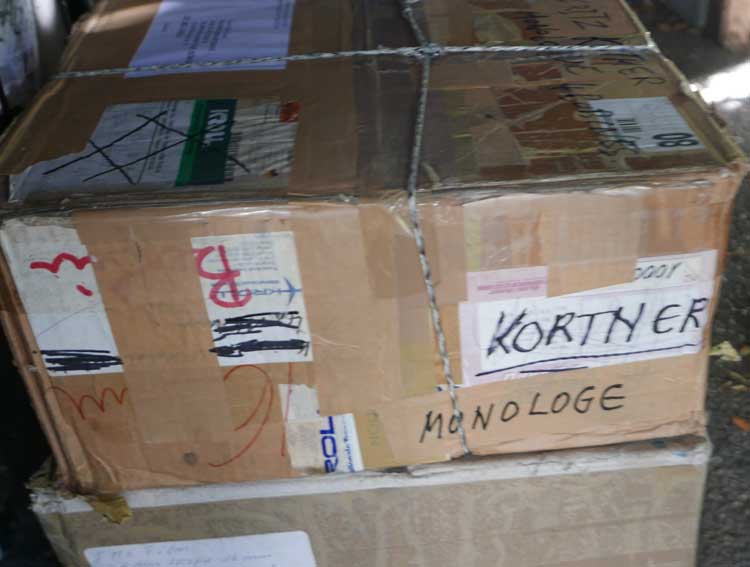so sammelt sich vor dem Verladen an der Stzrasse das Lager von innen der Treppen hinab und hiaf aus dem Regalen und vonm Boden die Ernte was zwischen den Jahren entstand als Bild und in Tönen. Schriftliches und auf Papier, das dann später