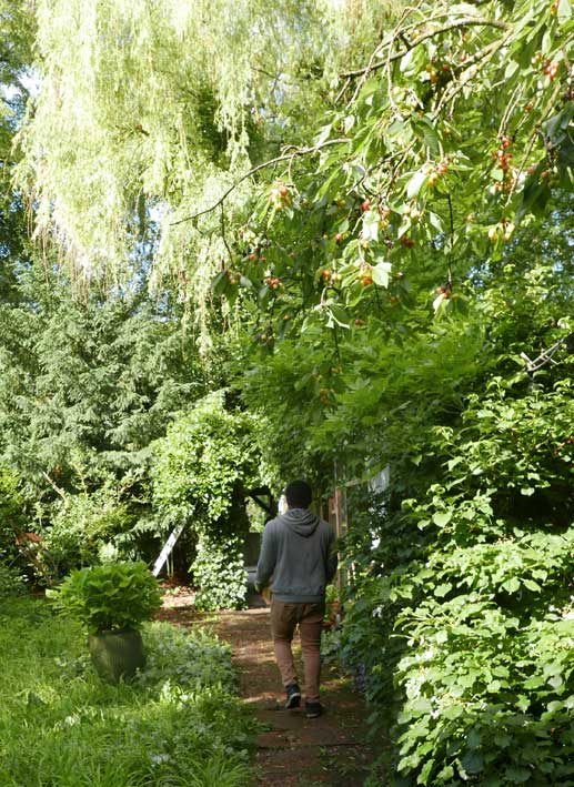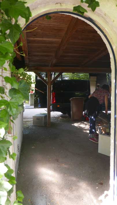 vorbei an der Garage, die zum Gartenhaus wurde, von wo das alles entstand.