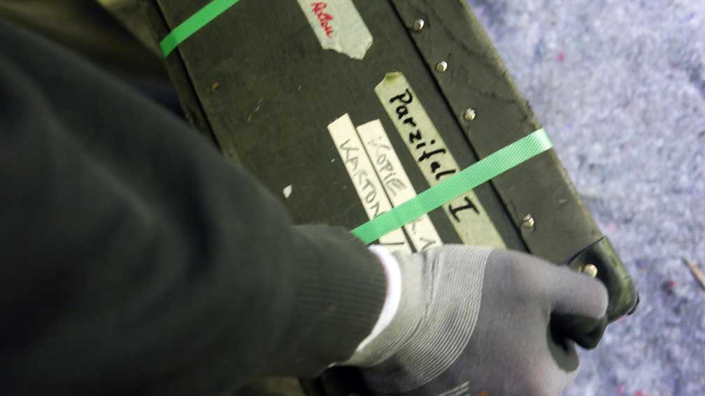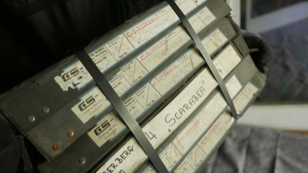 die Kopien in ihren durch Gebrauch der Transporte gezeichneten Spuren