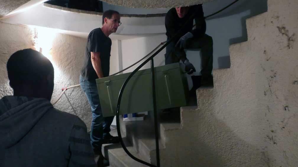 was ihr hochgeschleppt, verpackt und registriert nun vorgeführt in Teilen.