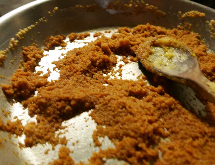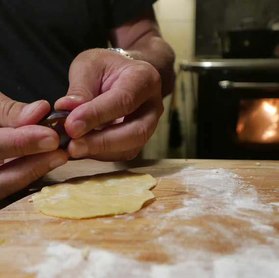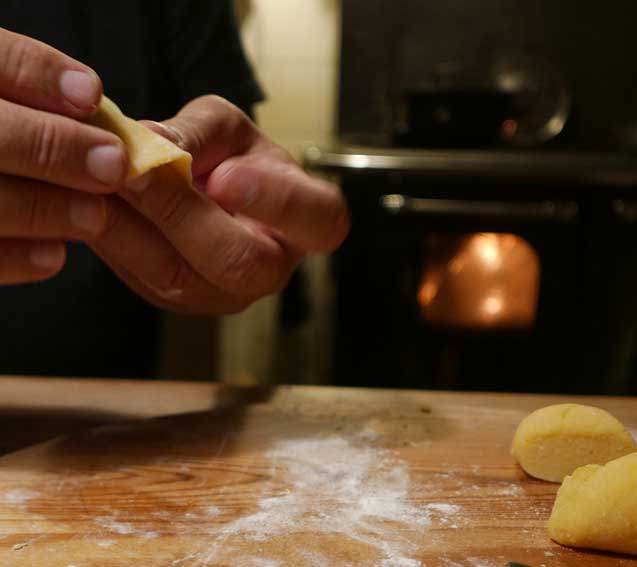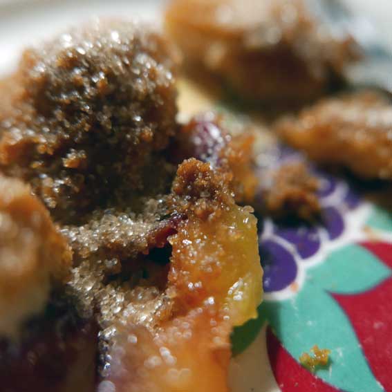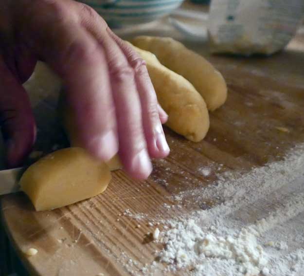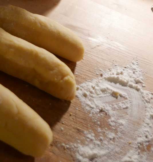 den Teig um die Früchte und den Kern aus Zucker hinein