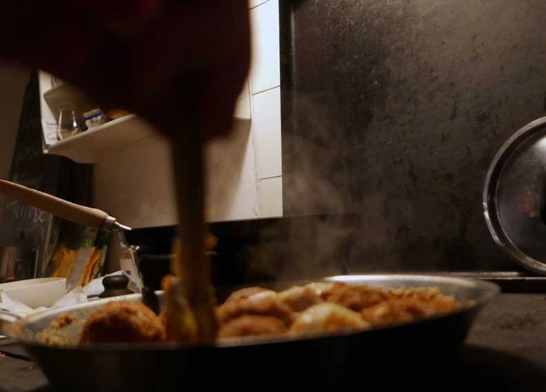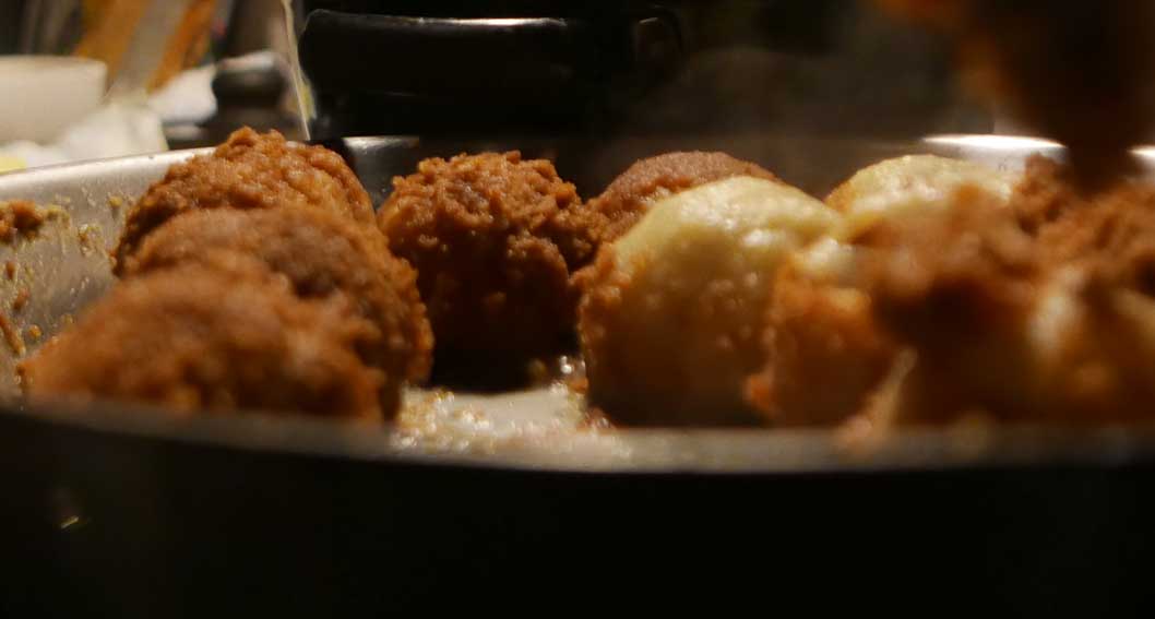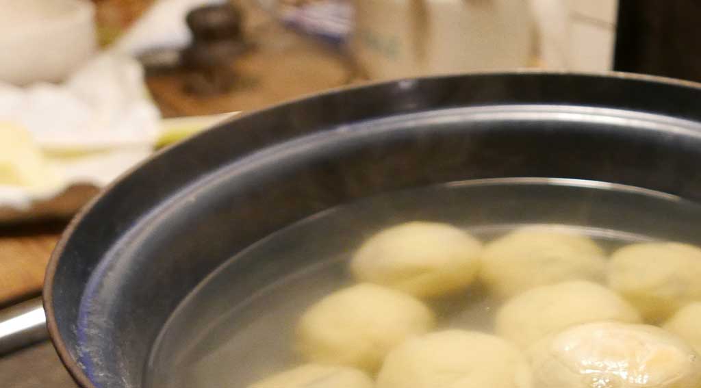 und schon schwimmen sie im heissen Wasser bis sie nach oben steigen und von wartenden Bröseln eingehüllt noch werden