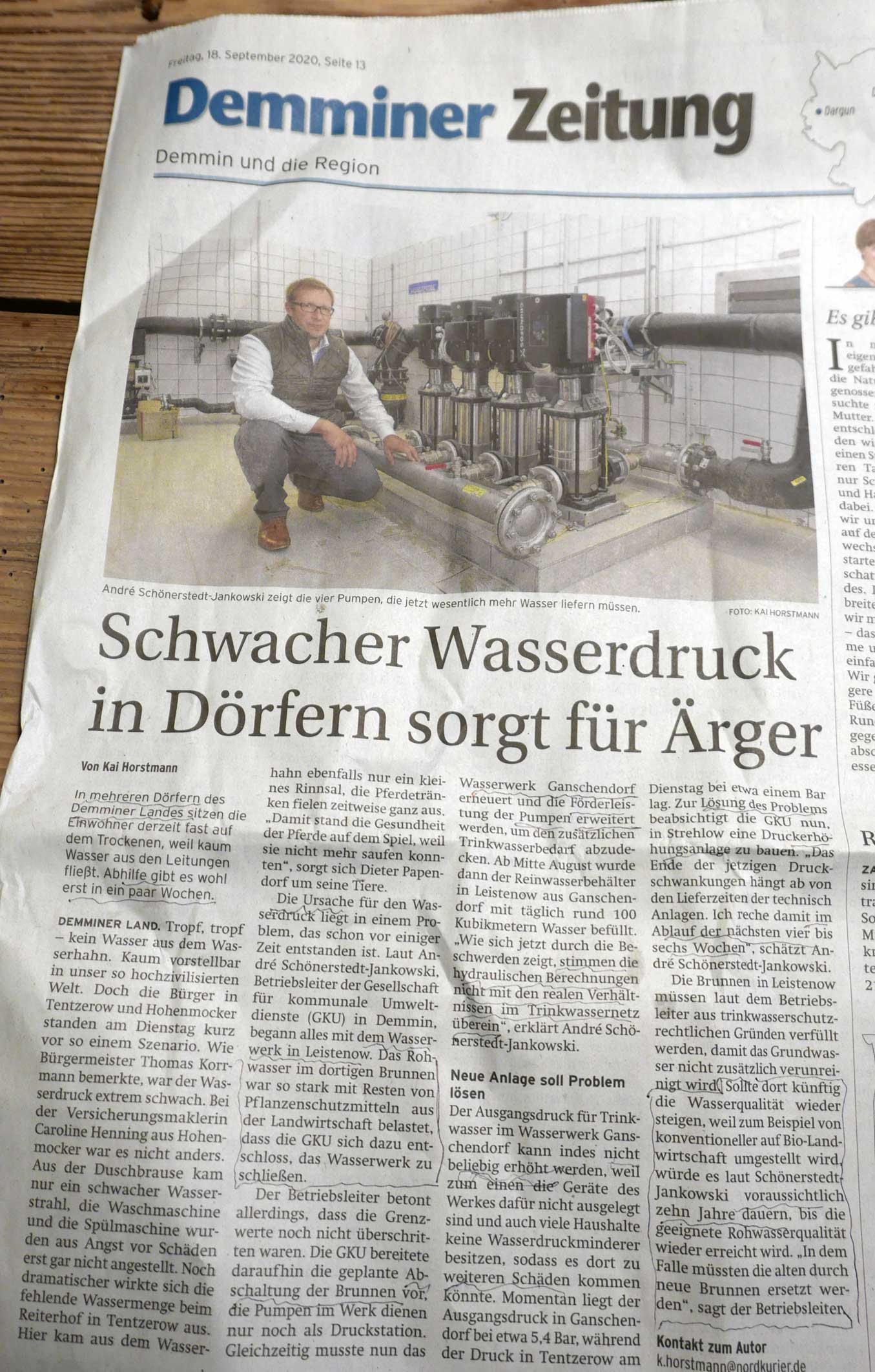Fragen eines teuer sich gerade wegen sauberer Leitung besorgten und so zum neuen Anschluss genötigten Wasserkunden. Der schon vor einigen Jahren am anderen Haus einen neuen Anschluss an das öffentliche Kanalsationssystem legen liess, legen musste als der eigene Brunnen aus dem Grundwasser hier -alle Jahre amtlich und privat selbst überprüft- zu kontaminiert war! kein schönes Gefühl. Wo, wie leben wir hier - auf dem Lande.