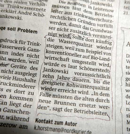 Da ergeben sich für den Zeitung lesenden Bürger in N. Fragen. An den Nordkurier/Demminer Zeitung.