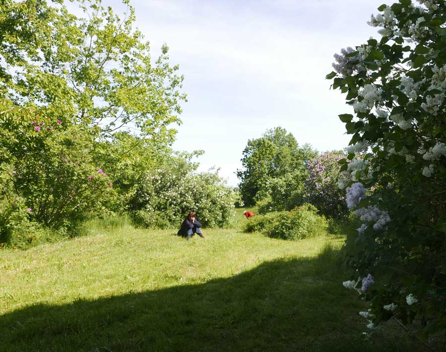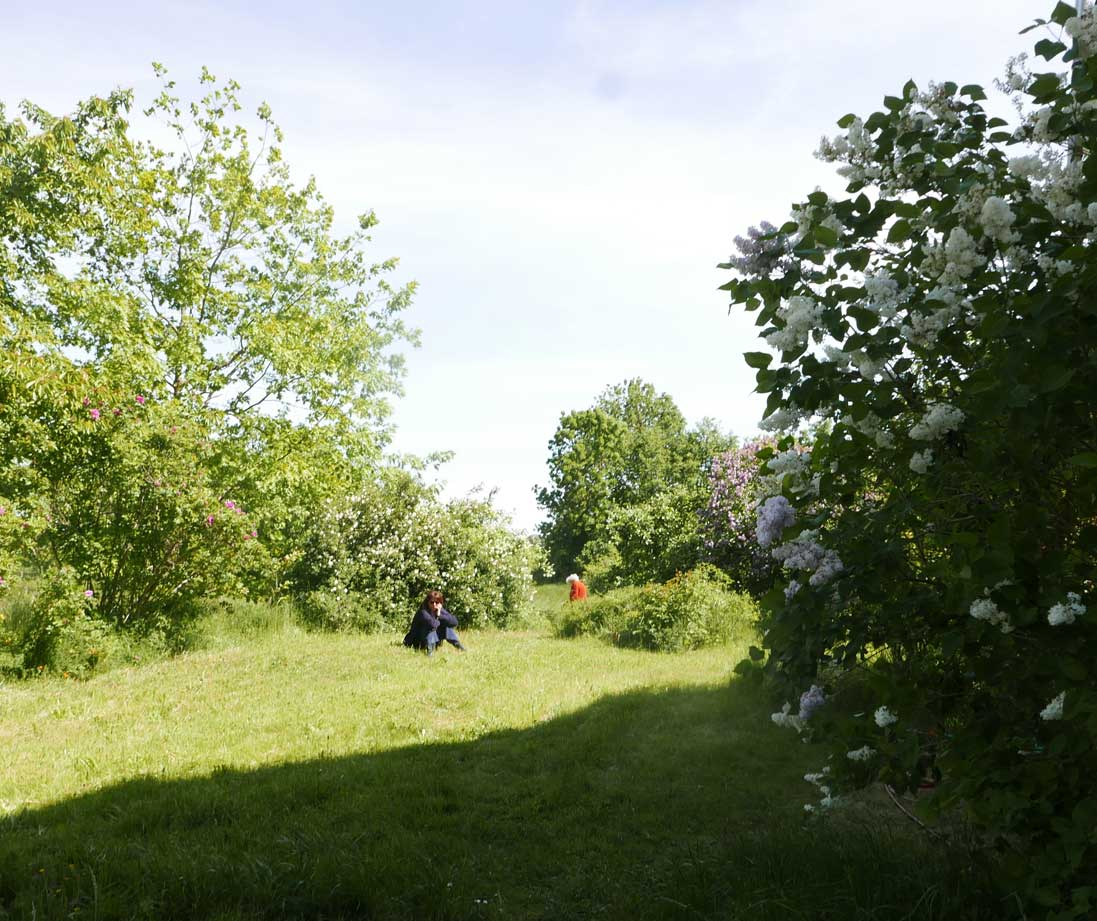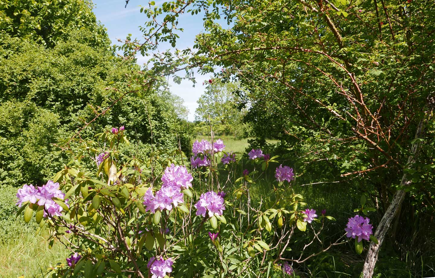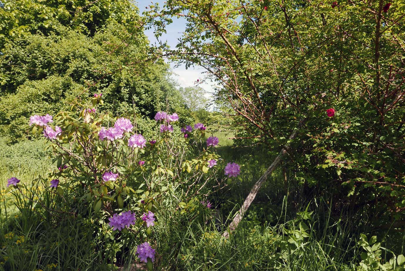 Vorn der Rhododendron in hellerem Lila.