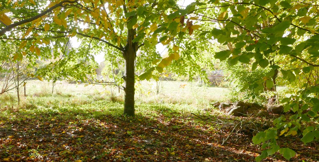 wo solche lichten Bäume sind mit solchen Blättern voll Sonne, da sind auch solche Räume mit offenen Flügeln der Fenster und Erde im Raum gut wie es die Alten wussten.