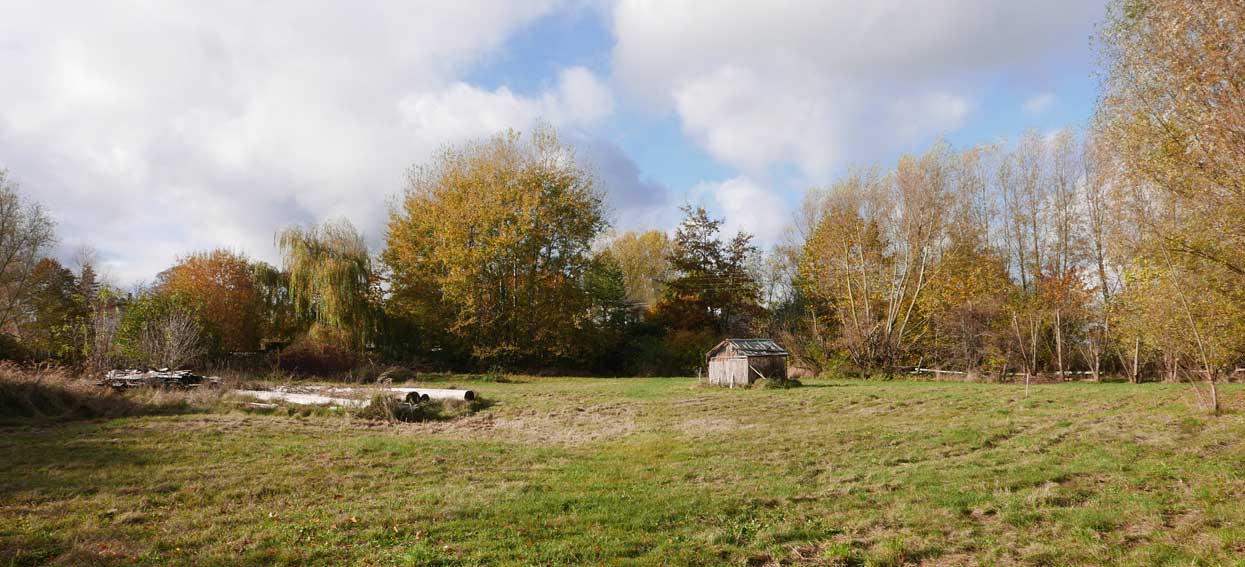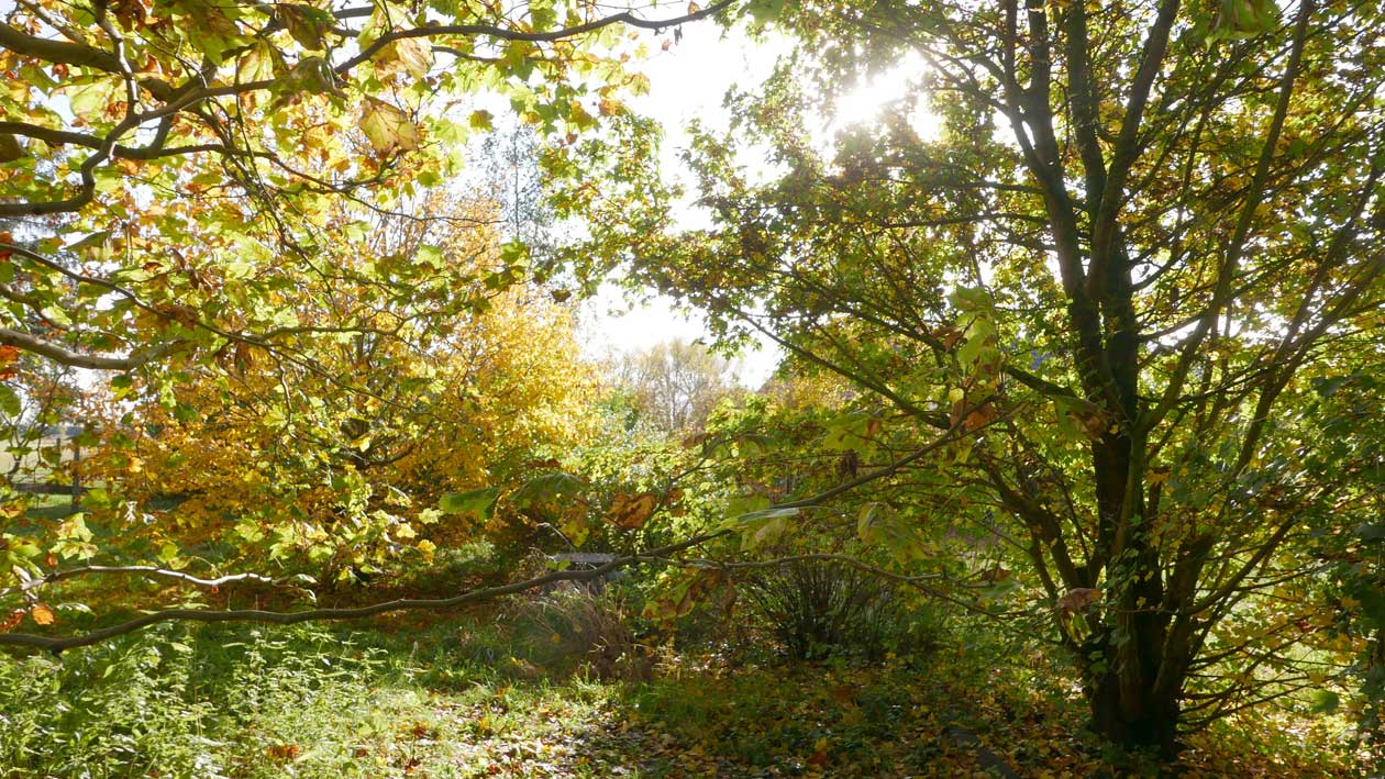 Der November macht es möglich. Wir sehen nach dem fallenden Laub auch die Halle mit neuem Dach und des