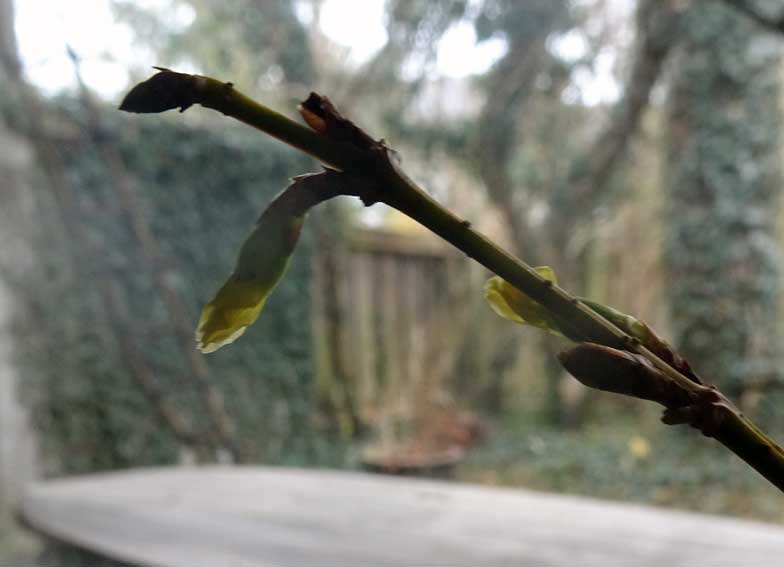 In München gehen die Forsytien auf, vor einer Woche ins Wasser gesetzt.