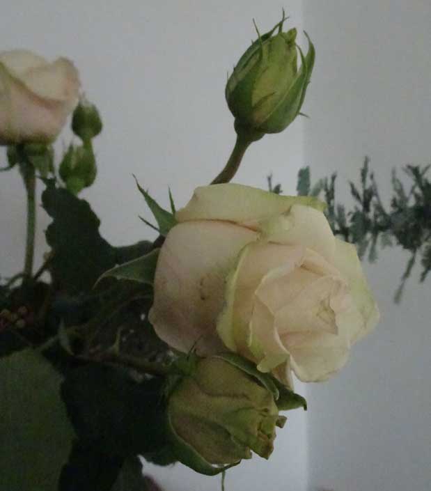 Die Winter-Rosen aus nun inzwischen geschlossenem Geschäft halten sich tapfer.