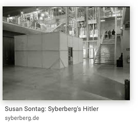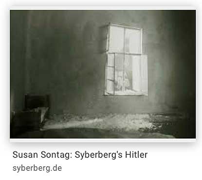 Diese Bilder aus dem N. nach seiner Wiederentdeckung 2000. Zwanzig Jahre nach Sus.Sontags Essay über den H-Film sind nie zusammengesetzt erschienen oder gennant worden. Und doch haben sie auf geheimnisvolle Weise etwas miteinander zu tun. Das Zimmer mit dem Bett aus der Nacht im Modell davor 15 Jahre zum Film aufgenommen, auch als Wiederherstellung des realen Raums unten ist nicht S.S.s Werk und eben doch könnte man es so verstehen.