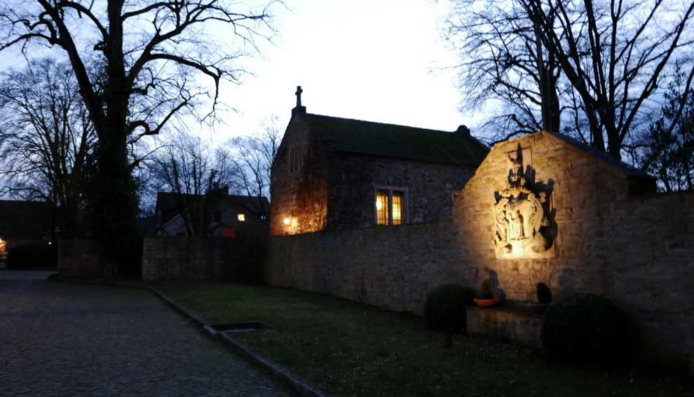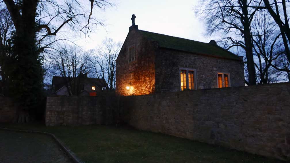 In der Kapelle für Einweihung des Hauses wieder, Begräbnis der Begleiterin, Hochzeit in neuem Geist und nun diese Feier. alles unter einem Dach.