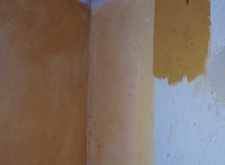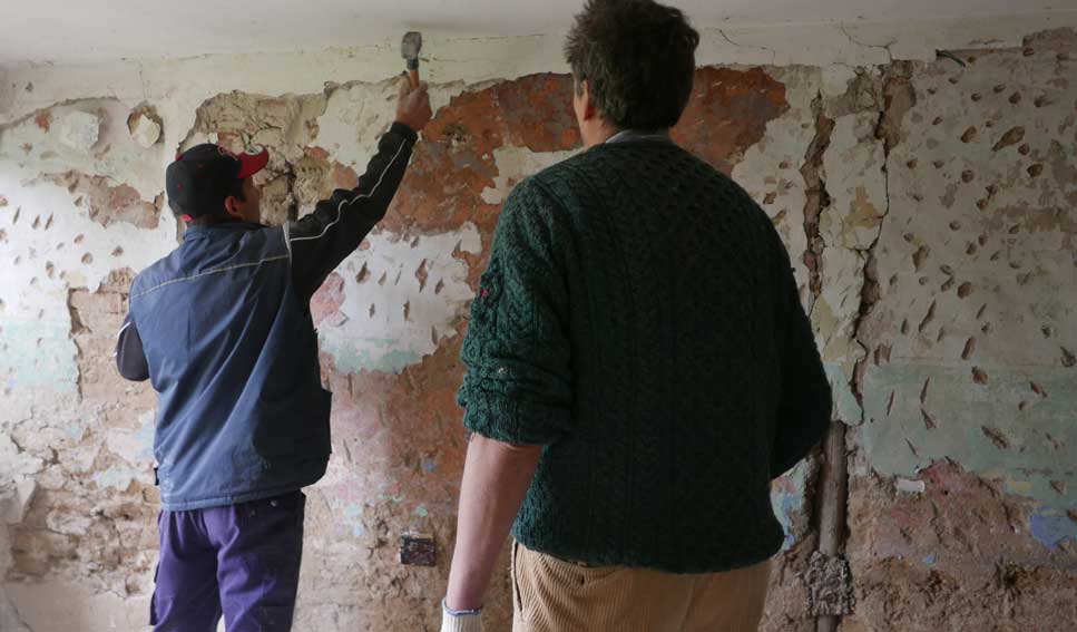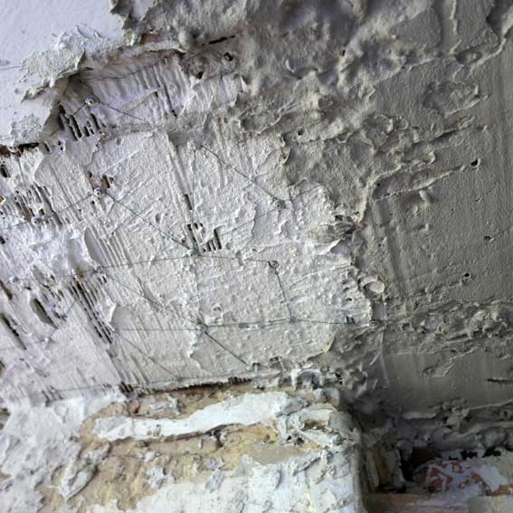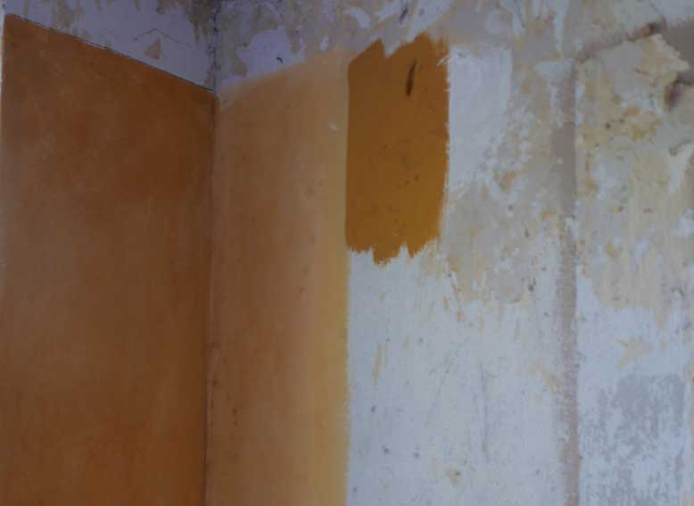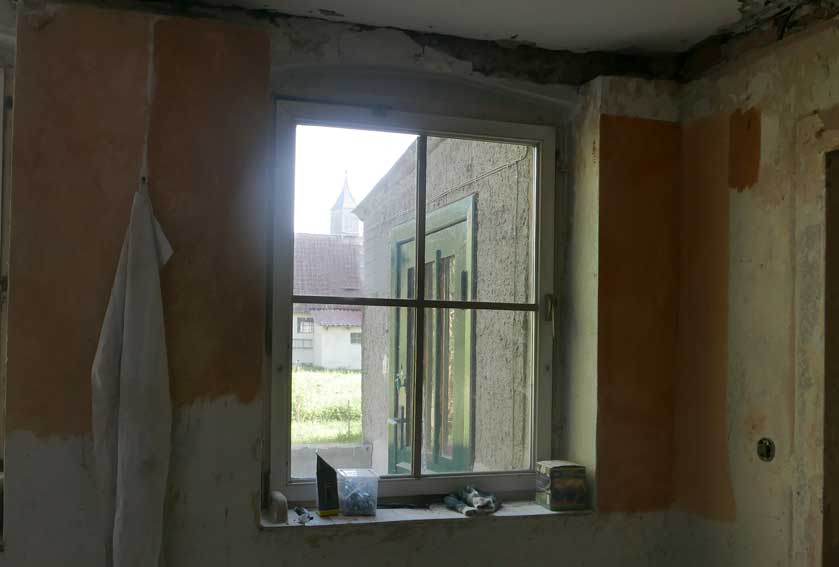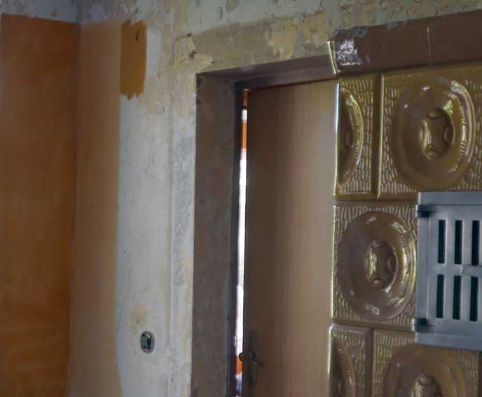 Grund auf Schilfmatten nach alter Art. Die Entfernung der Plastikschichten in den Räumen kostet. Erfordert spezielle Materialen, altes Wissen, Zeit. Und den Willen es zu tun.