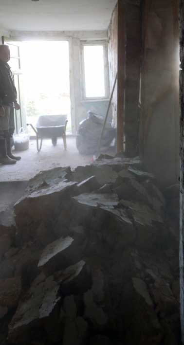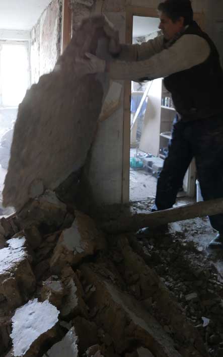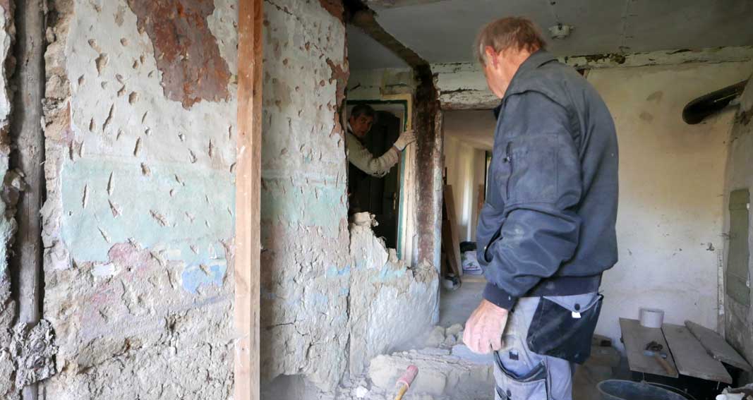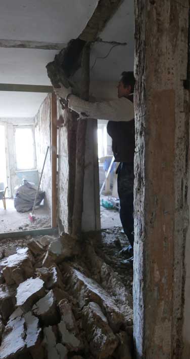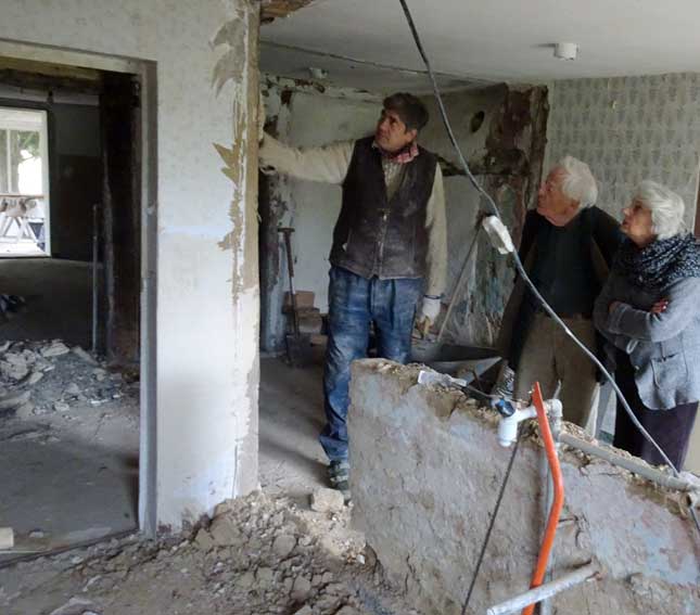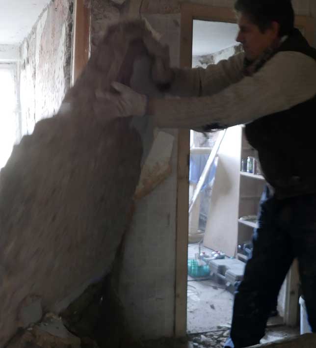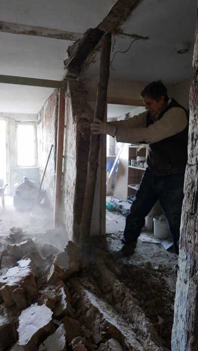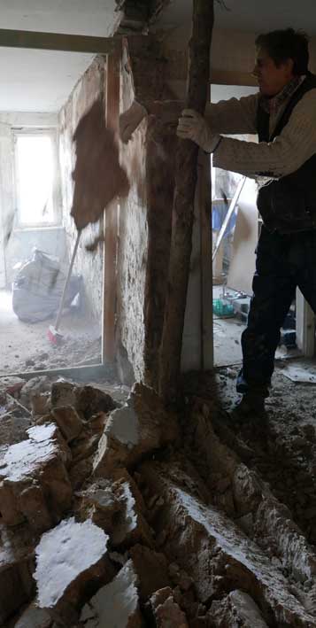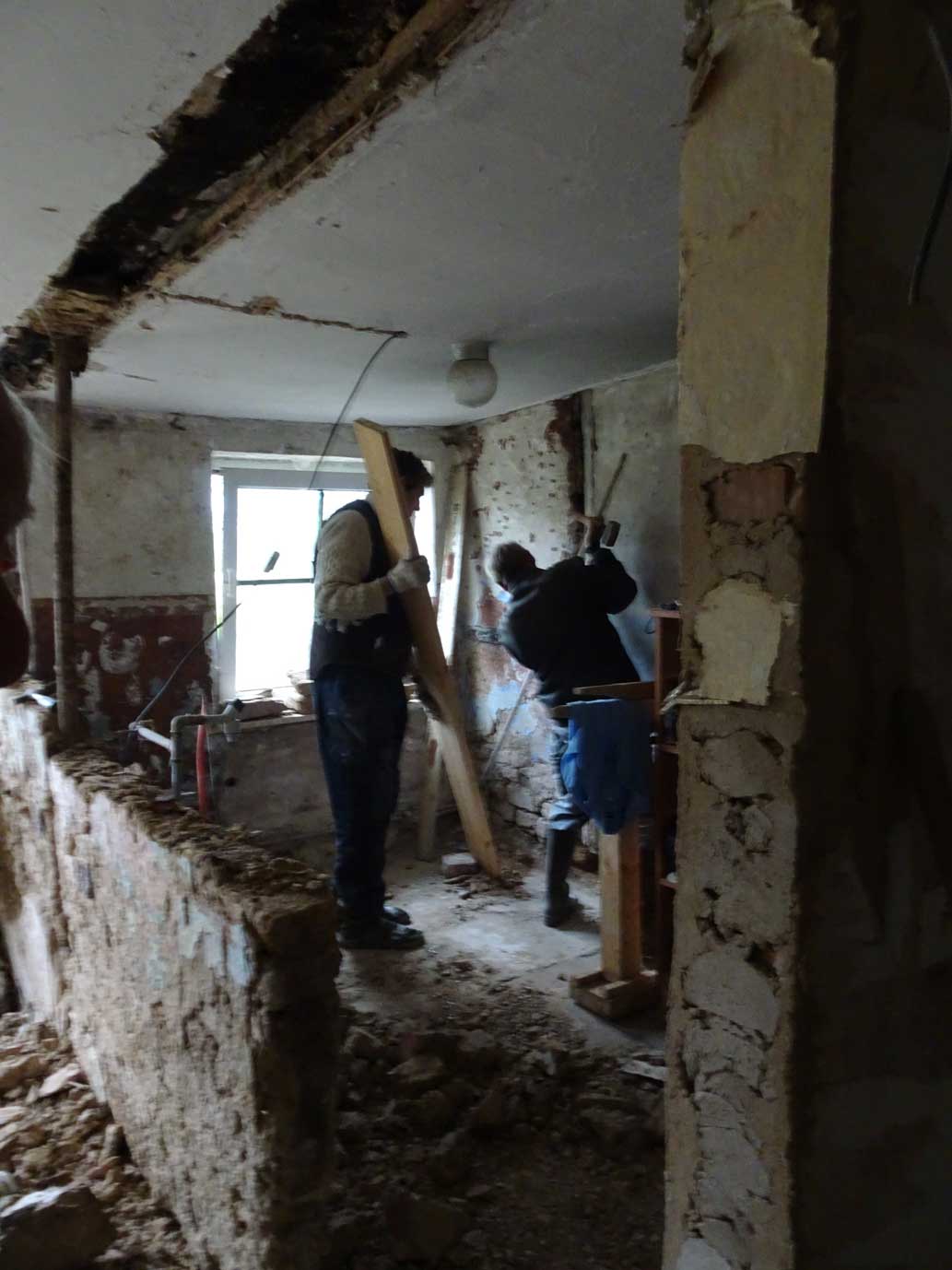 dass ein Raum entsteht, zur Küche wird, wo der grosse alte Kamin unten herabreicht. Zur offenen Feuerstelle wurde.