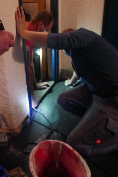 diesmal kommts von unten. Finden die Quelle oder mehrere Austritte wo. Versiegeln wie.