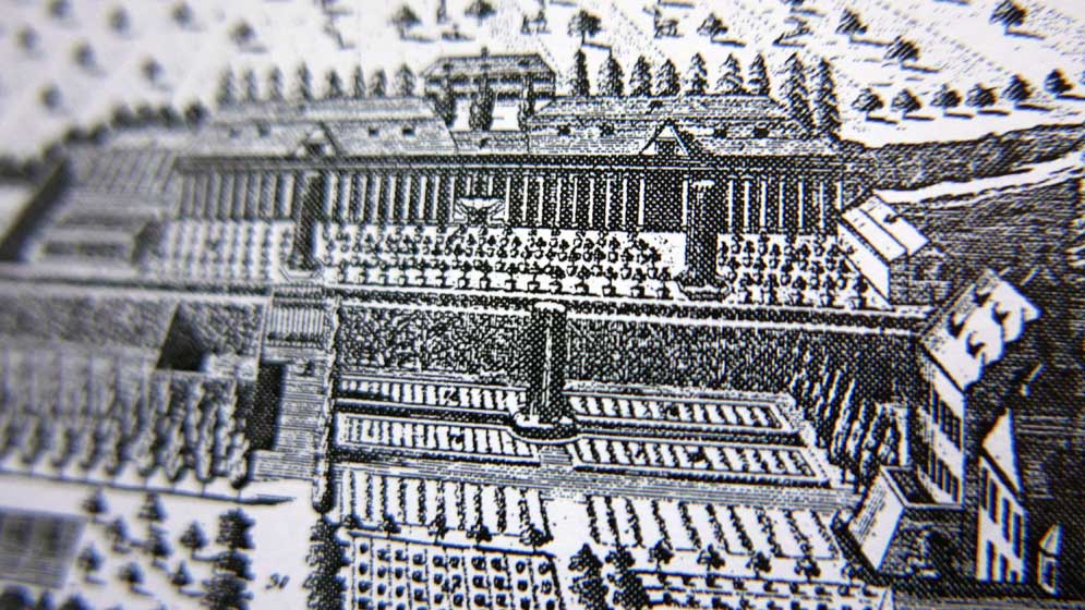 sie wussten auch damals wo sie das Glashaus hinsetzten mit Blick aufs und darinnen die Sehnsuchtswelt des Südens mit Pflanzen und Früchten