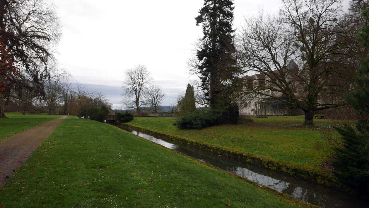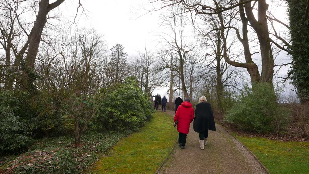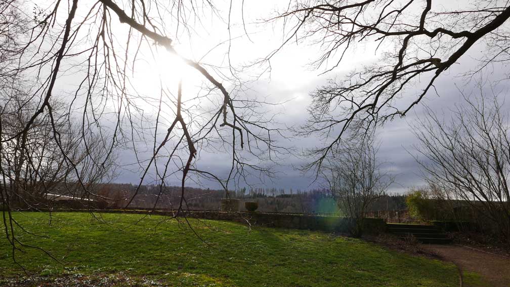 und so wars die Philosophie der damaligen Garten-Architekten, über die Begrenzung des eigenen Geländes so zu schauen, dass die benachbarte Landschft mit wirkt als sei allles eins. Als Gottes Land dem Menschen zugetan. Kultur-Landschaft eben.