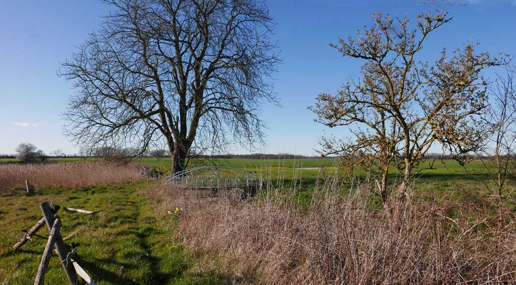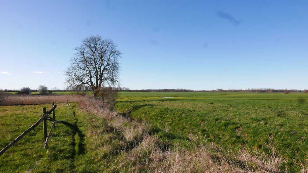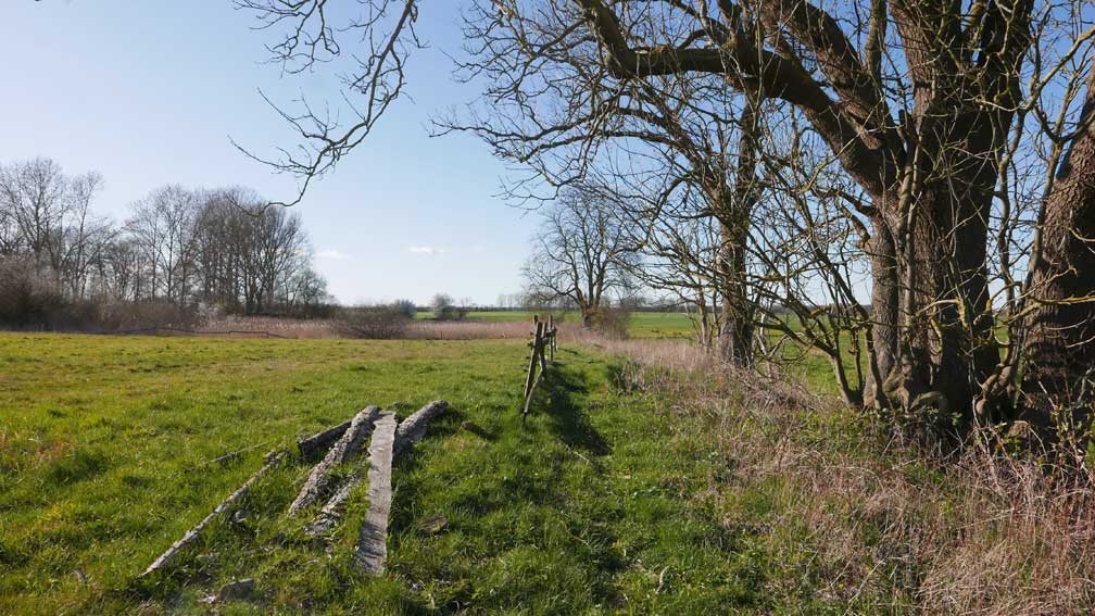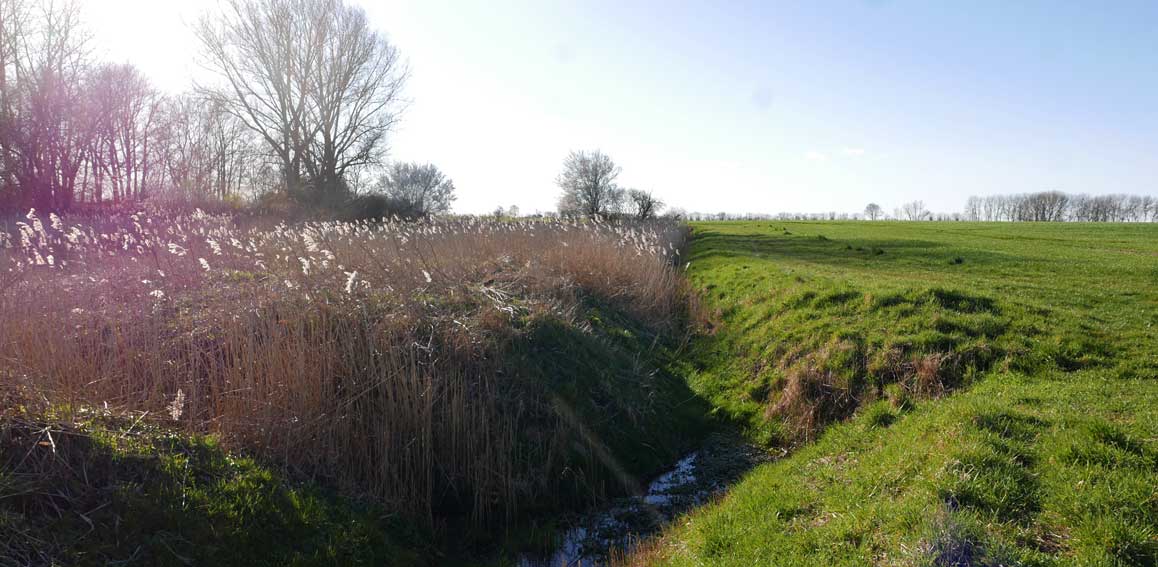 Der Weg am Graben wieder mit Abstand zu dem geflügten Teil