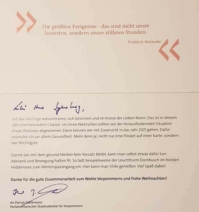 seit Wochen ohne Antwort auf unsere Mahnung zum Versprechen unseren Sieg in seiner Beliebtheitsumfrage zum Markt in Demmin und zu Nossendorfmit Taten zu beantworten. Woztu er als Staatssekretär aufgerufen.