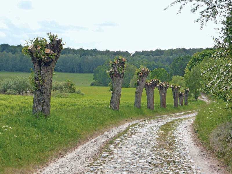 eine Weidenallee durch Felder