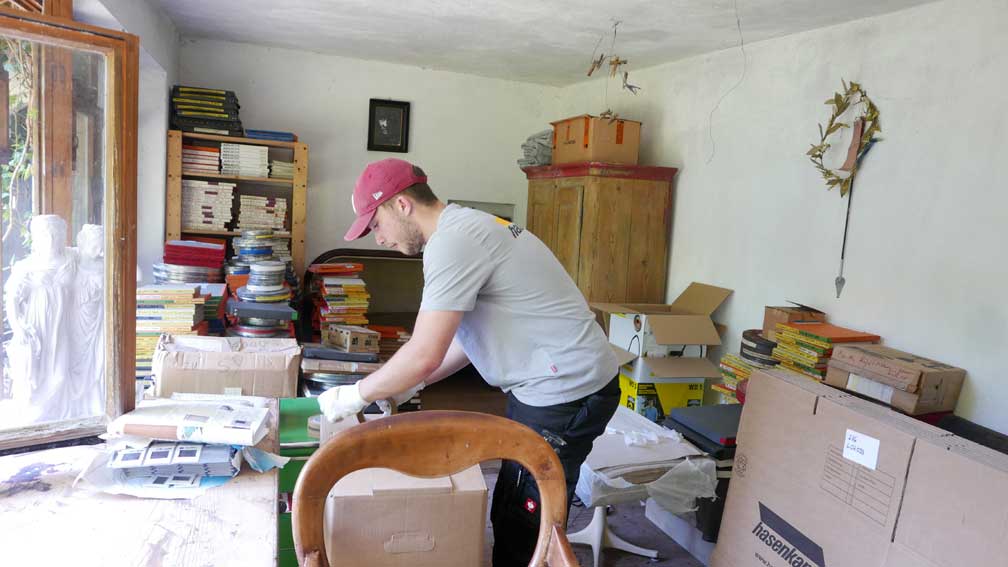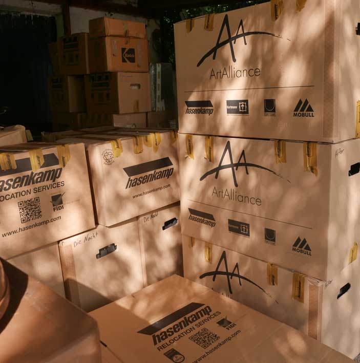 das sorgfältig Entstandene, übersichtlich am Ort des Entstehens sichtbat nun ins Blinde verpackt, noch zusammen, wielange Der osrt schon verlossen und dann, wer wird dafür Kämpfen, dass es zusammenbleibt, in die Sichtbarkeit kommt, was machen dafür.