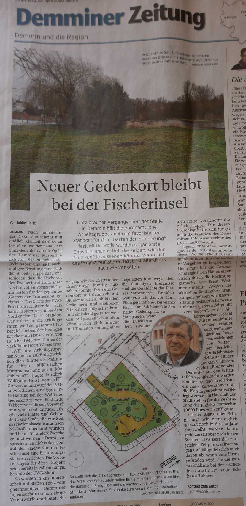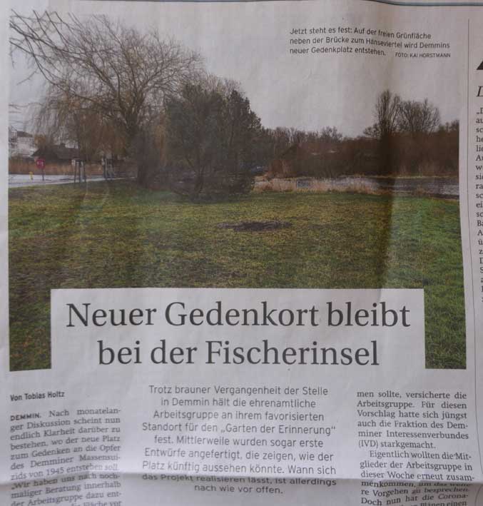 Also nun also Demmin. Wo das Schweigen bisher verordnet war und wo sich Betroffene Rituale suchten, auch an einem Ort, an dem es ein anderes Denkmal gibt, im Wald und gern verschwiegen und zerstört und gerade so geduldet. Man hat also vor Augen, was mit solchen Orten geschieht. Den Ruinenwert immer mit mitzudenken.
