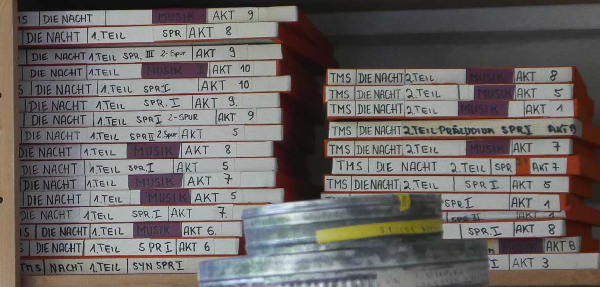 Und als Arbeitsmaterial, getrennt in den Rollen ihrer Entstehung von Bild und Tönen.
