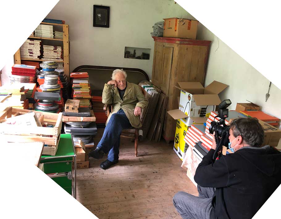 Er fragt nach den Erfordernissen des Film Hauses, das wir installieren könnten, aus unseren Kellern und Depots um daraus einen lebendigen Organismus zu machen, mit einem Archiv und der Belebung, zu einem neuen Zentrum.