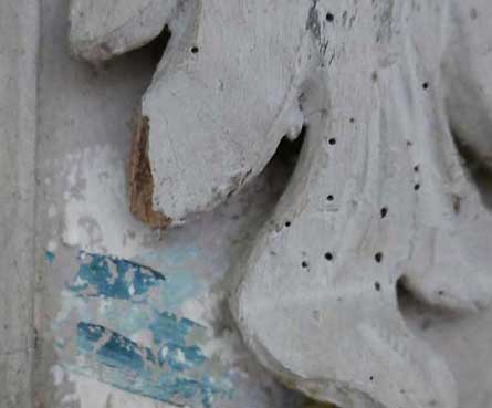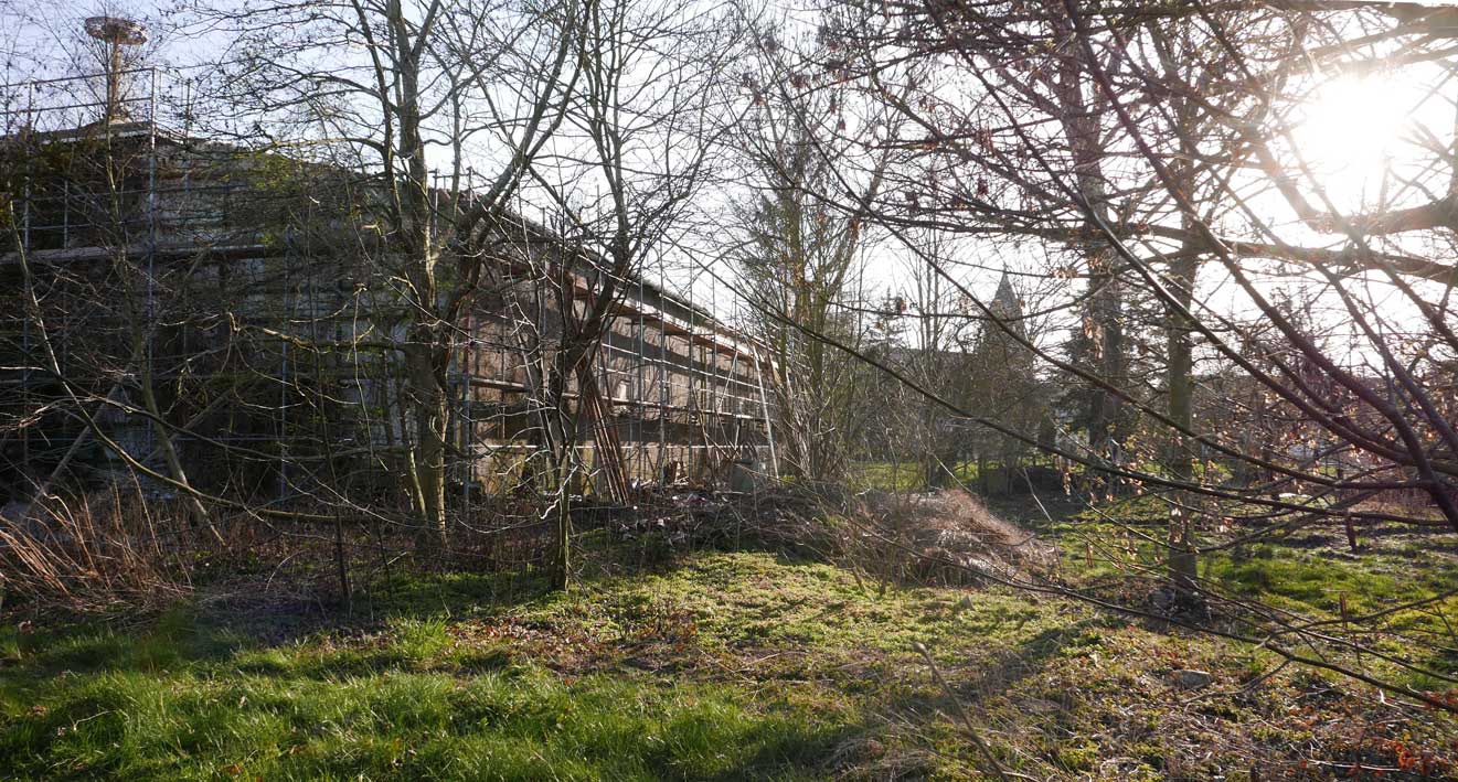 Arbeiten an der Kirche innen alte Farben wieder zu finden. Das Geld ist da. Und Arbeit ist erwünscht in solchen Zeiten.