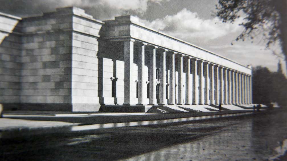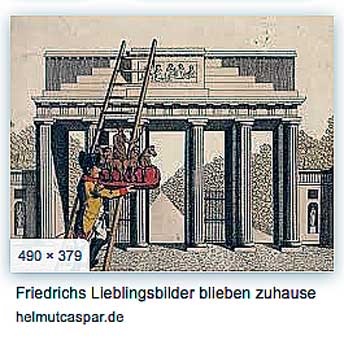 Das was Macht bewies und Stil der Zeit machte, die Antike, und gefiel, aber aus Berlin die Bilder Friedrichs II , den er verehrte, nicht.