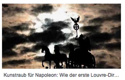 Und schon sind wir bei jenem anderen Kunstfreund und Krieger, der von Anfang seine Kriege führte Kunst zu requirieren Europa-weit und gefährdend, alles in Feuer und Staub, und neben vielen Toten nicht ernstgenommen was sonst noch geschah. Aber Kunst immer oben und soviel mehr.Auch hier getragen aus des Volkes Willen, einer Exekution von allem dagegen.