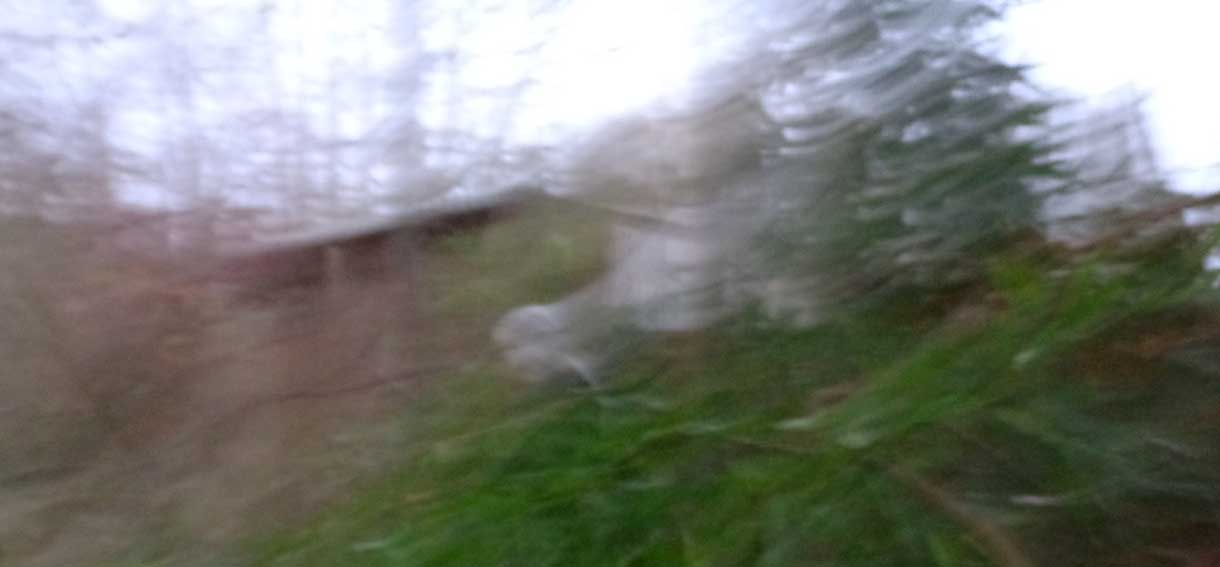 Dass nur mehr die Stämme wie Strünke übrig blieben. Und von drüben grüssts herüber als Asbestgift und engstes Hütten- wesen aus Plastik-Glück. Seit 15 Jahren nahe dem eigenen Haus. Die Gerichte voll davon.