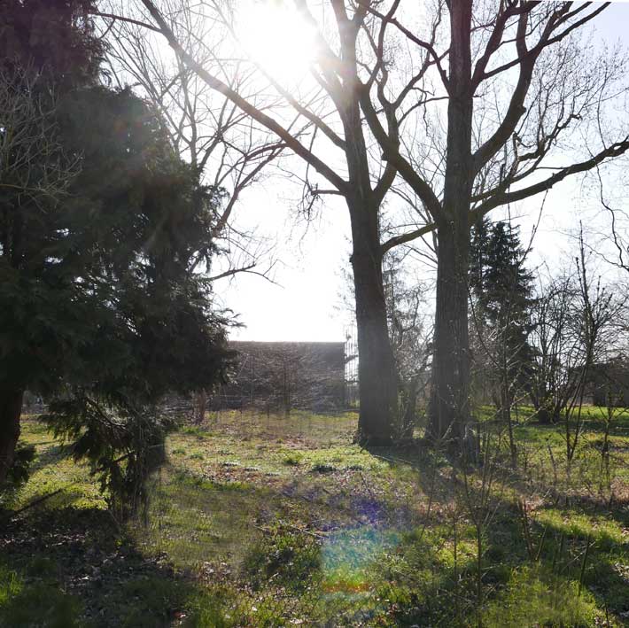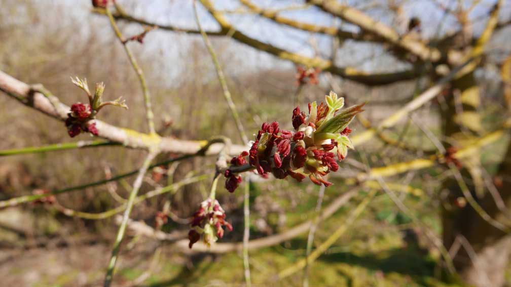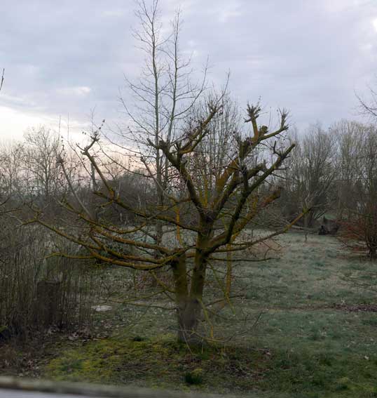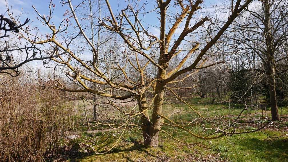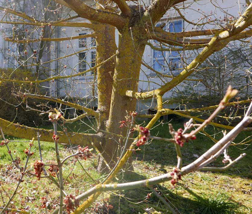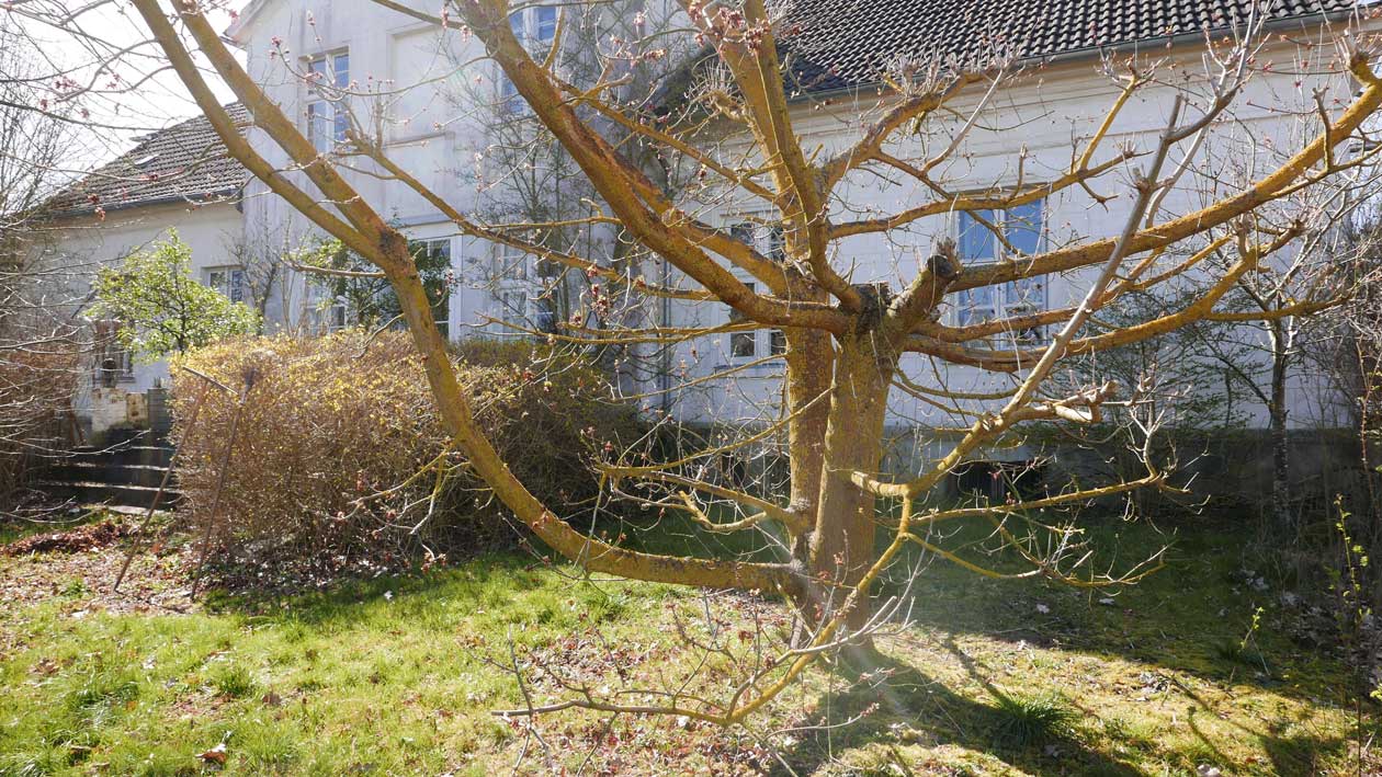In Wotenick, woher die unsere stammte, im Garten des Pfarrhauses sahen wir die dortige ahornblättrige Esche nun gleichfalls nahe am Haus und eng zwischen anderen zurückgeschnitten