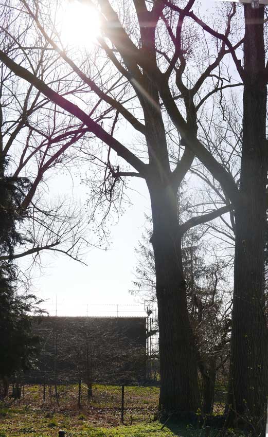 Zu nahe hinter dem Haus steht eine ahornblättrige Esche. Sie wächst sehr schnell. 2 Meter im Jahr nach allen Seiten.