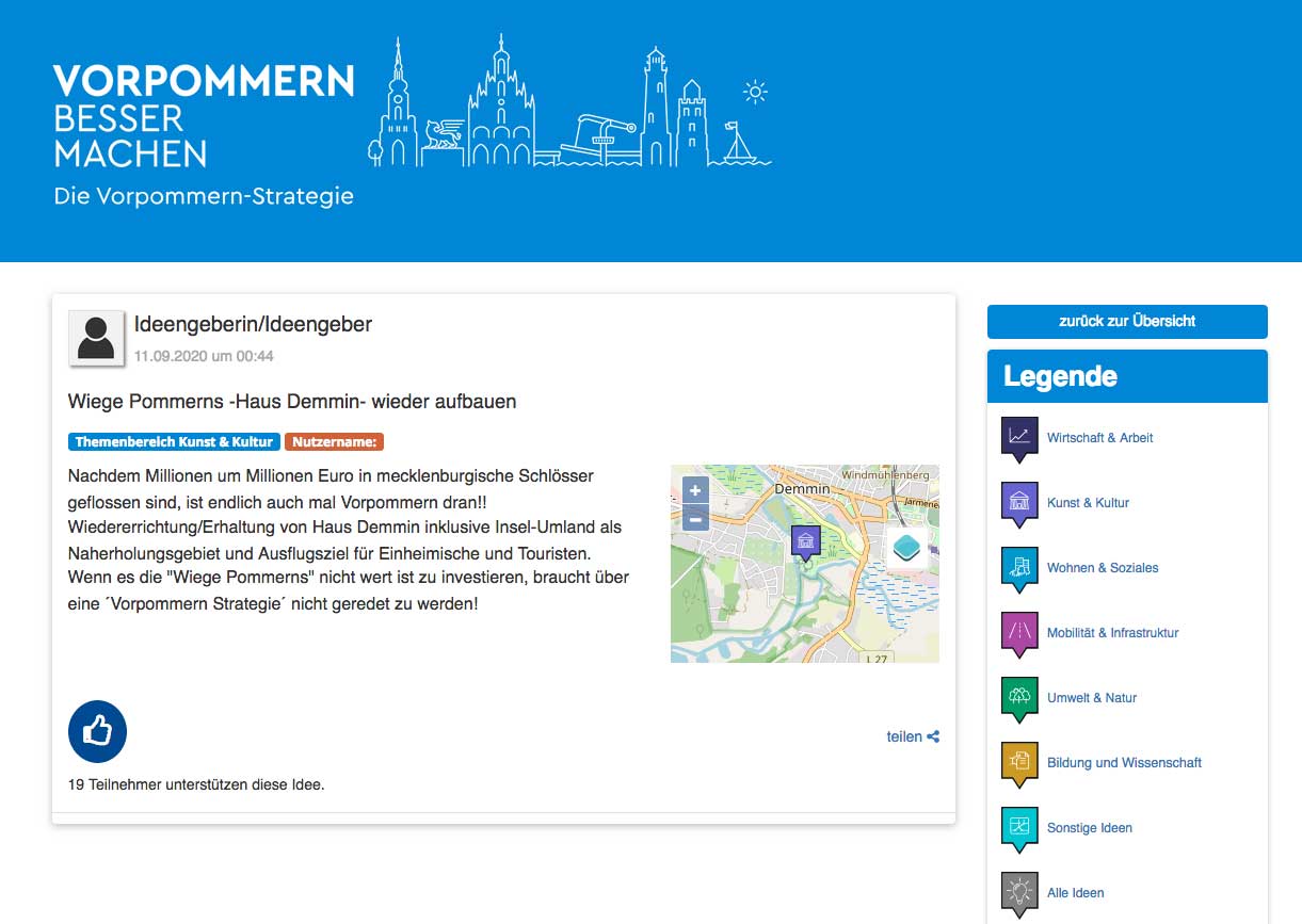 EinVotum auch für diesen Ort hier würde dienen diesem Vorpommern wieder eine aktive Stimme in den Kulturlandschaften auch unserer Zeit zu geben >>>.
