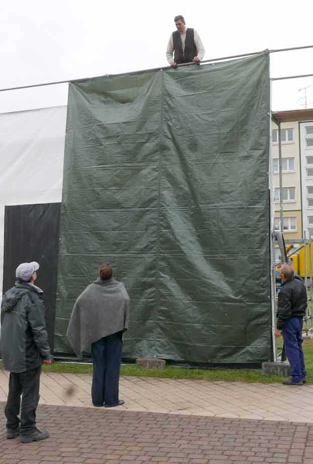 Das Nächste am Markt in Demmin die Südseite wieder bauen an Gerüsten mit Planen wie die Fotos waren oder geladen einen ganzen Markt entlang