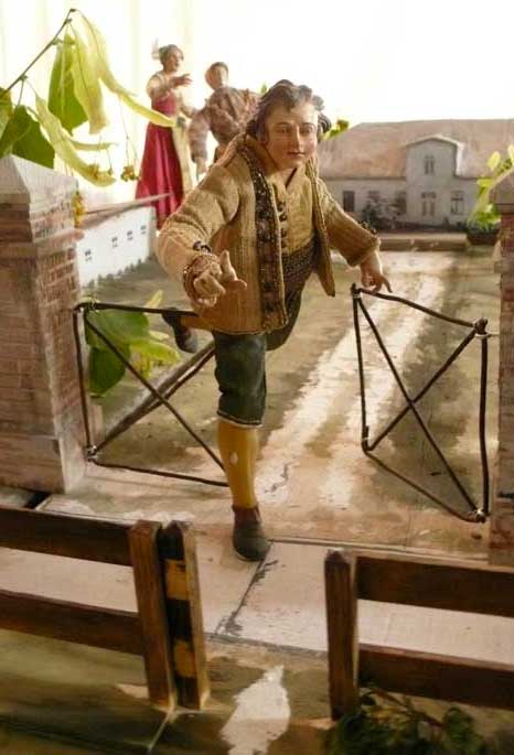 vom Gutshaus zur Kirche, den sie uns weggenommen, mit den alten Puppen aus Neapel. Nachgebaut.