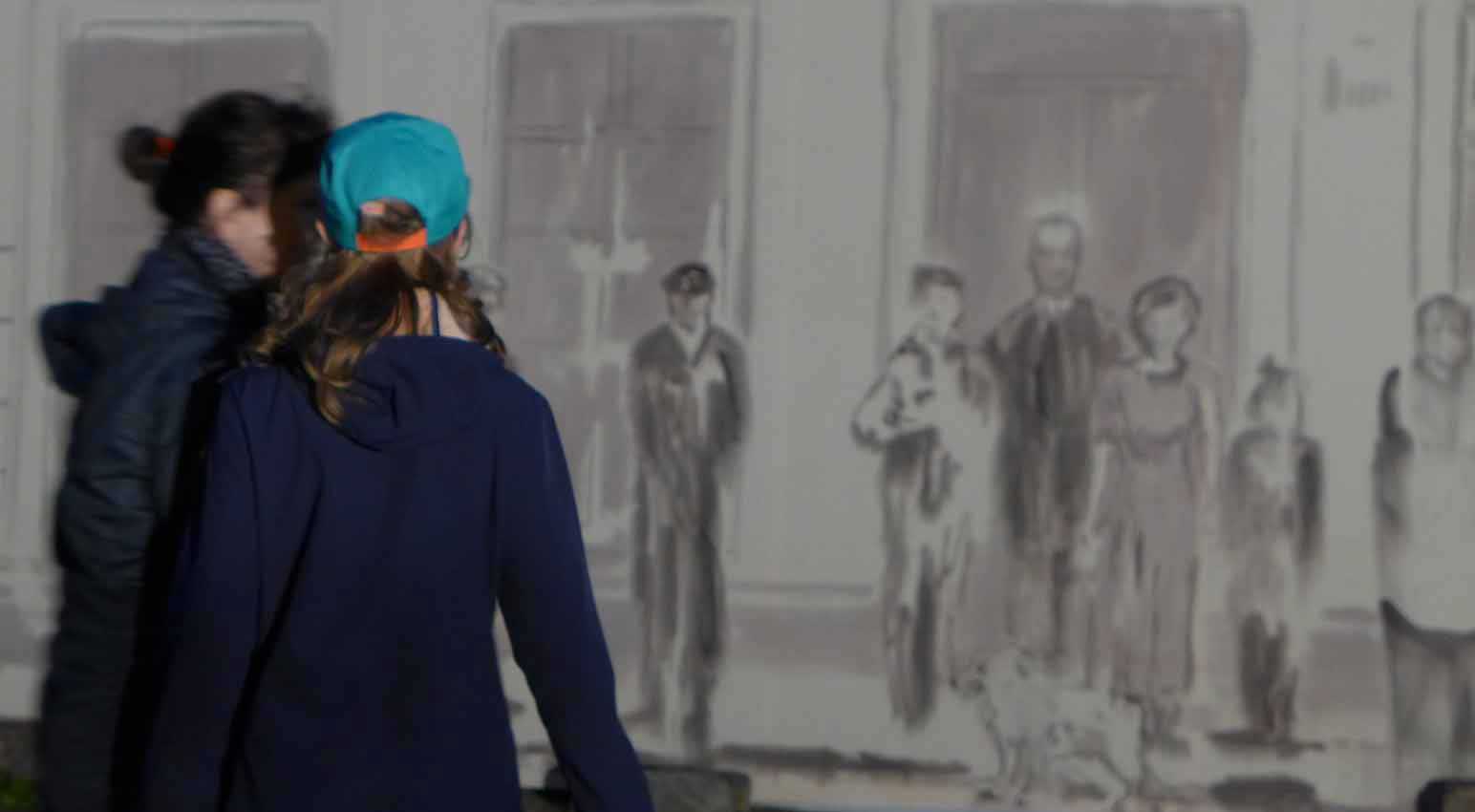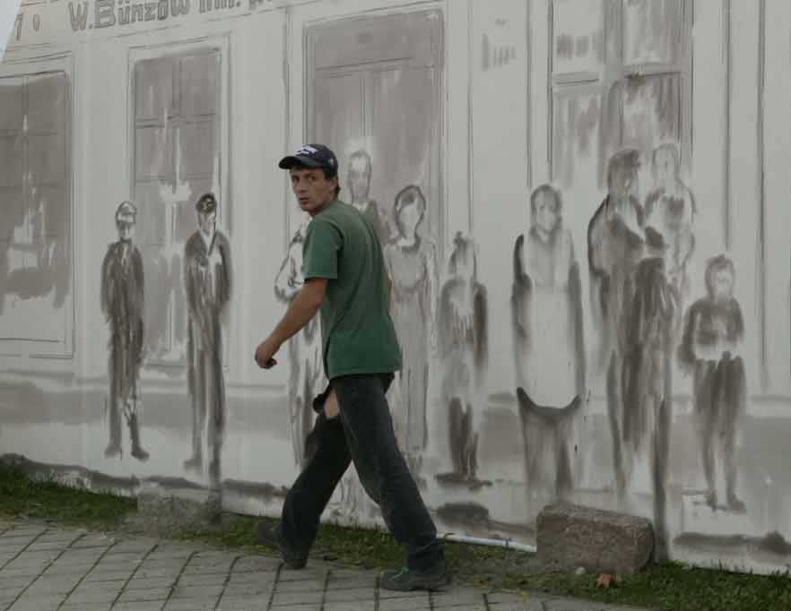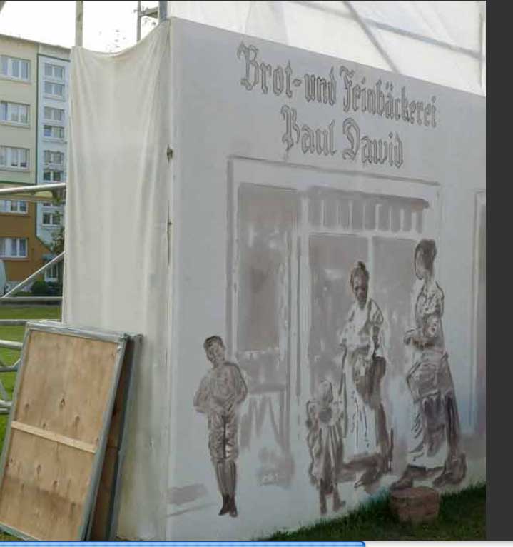 so auch die Figuren der Menschen nach den Fotos von damals aufgestellt davor