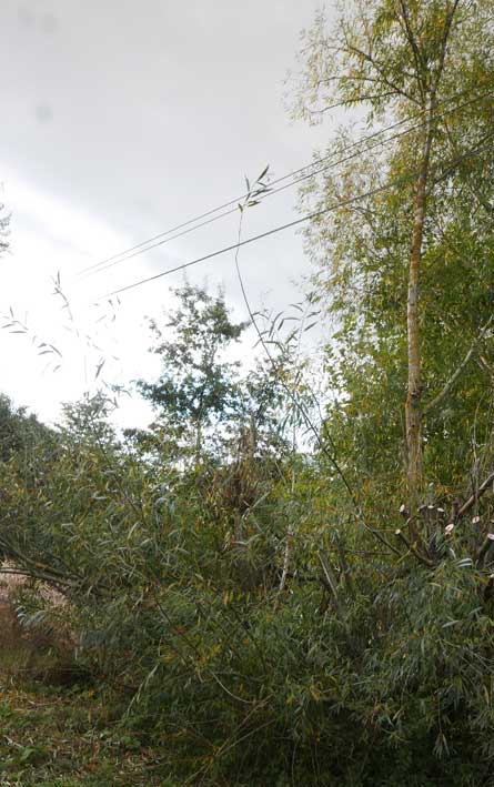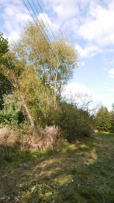 Alle 2 Jahre kommt e-dis Bäume schneiden, dass sie nicht in die Leitungen wachsen. Hier übergeben an die Forstwirtschaft. Und das sieht dann so aus.