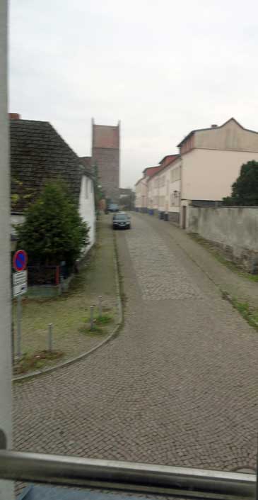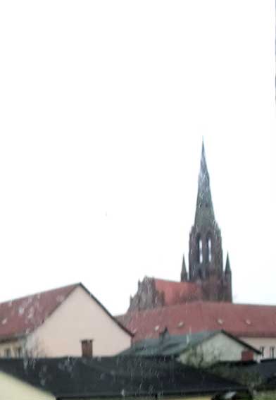 immer deutlicher der spitze Turm von St. Bartolomaei in D.