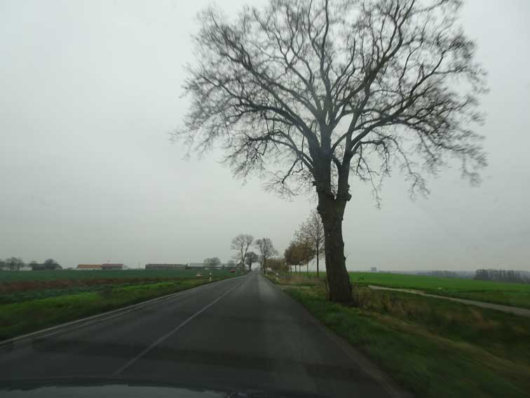 die ausgefranste Baumreihe der bisherigen Allee macht den neuen hochgeschorenen Pflanzungen abseits am Radweg Platz
