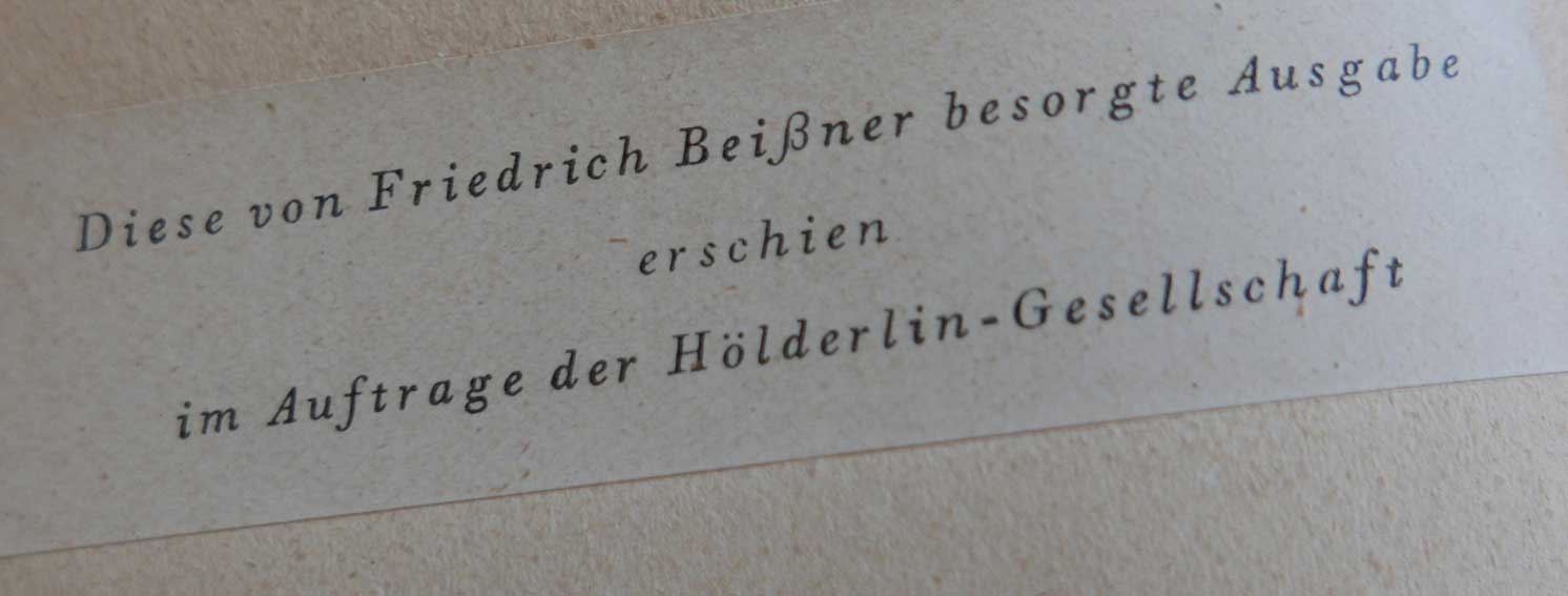 Herausgegeben von dem der die damals und für lange Zeit verbindliche Hölderlin - Ausgabe aus Stuttgart von der Hölderlin-Gesellschaft besorgte.