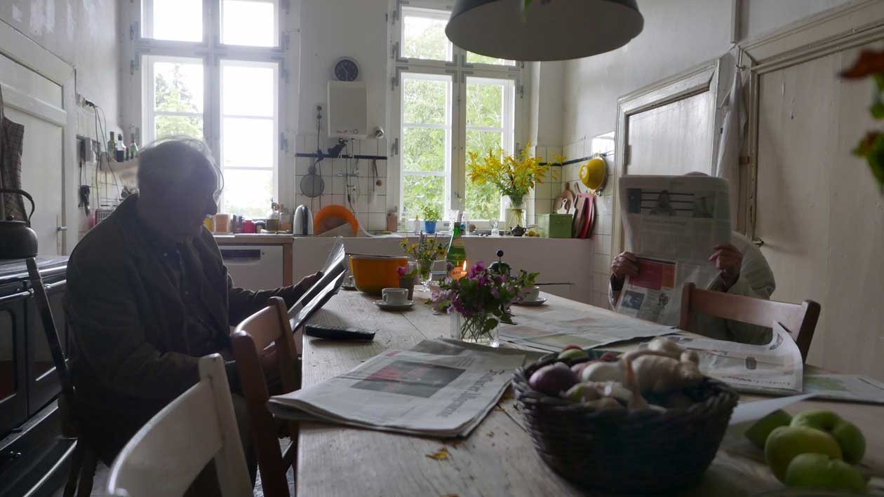 Ein Raum aus dem Video zum Projekt aus dem Architektubüro Heimerl in München mit Bilder von Karl Schlösser installiert. 1945 in Demmin, dem Ende seiner Kindheit.