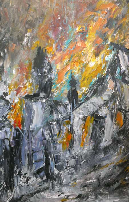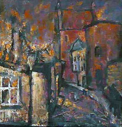 Ein 2. Versuch. Das brennende Demmin eine Bilder Folge von Karl Schlösser kurz vor seinem Tode fertig. Hier mit seinem letzten Selbst-Porträt.
